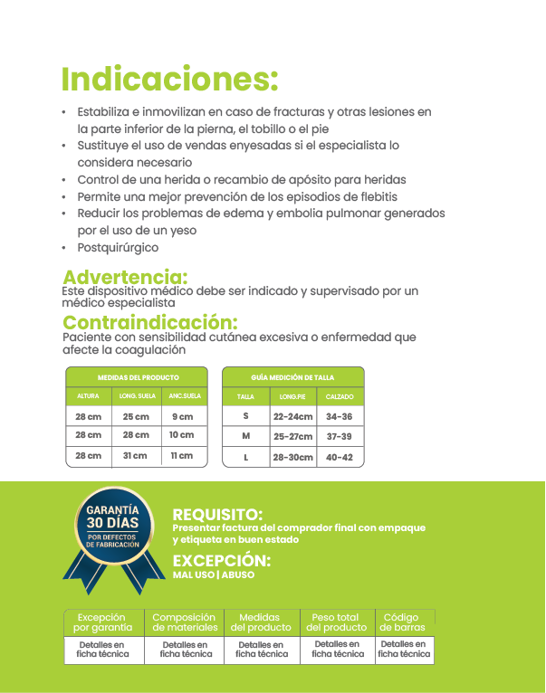 - Mantiene el pie fresco durante la rehabilitación y para un tacto suave y confortable en la piel.