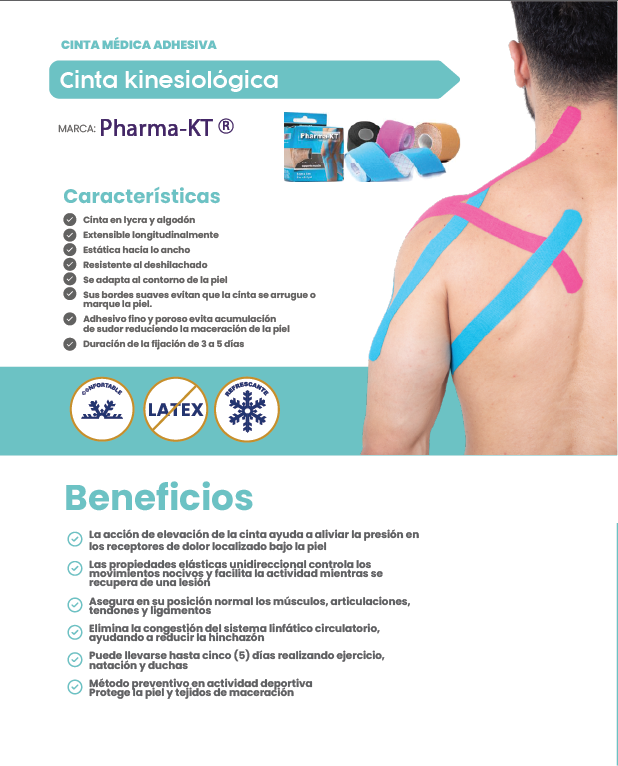 Presentamos Pharma-KT, una solución innovadora para el alivio y la recuperación de lesiones musculares y articulares. Con su tecnología avanzada y sus beneficios únicos, Pharma-KT se convierte en tu aliado indispensable para un rendimiento óptimo y una recuperación efectiva.