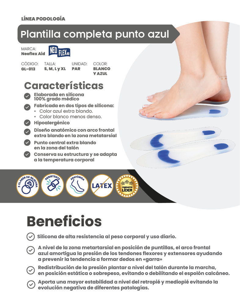 Optimiza tu pisada con nuestra Plantilla Completa de Silicona: Resistencia, Amortiguación y Estabilidad para tus pies. Ayuda a prevenir dedos en ‘garra’, espolones calcáneos y mejora la estabilidad en cada paso.