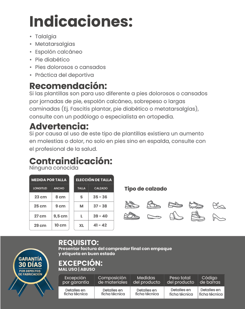 - Talla M: 25 cms de largo x 9 cms de ancho (Calzado 37/38)