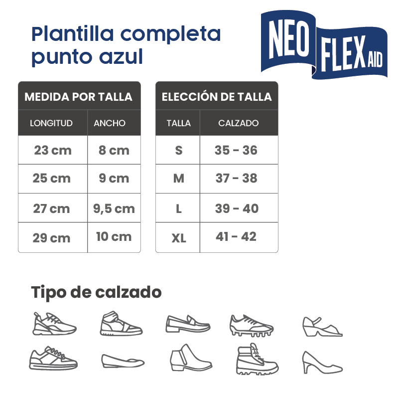 - Talla XL: 29 cms de largo x 10 cms de ancho (Calzado 41/42)