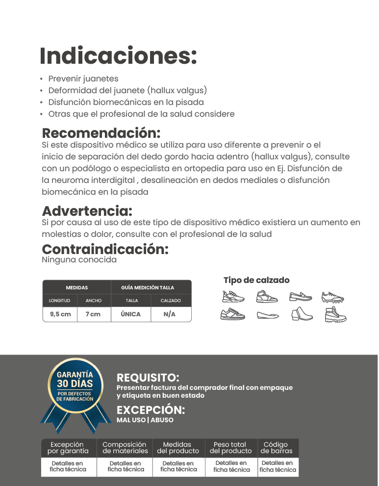 • Absorbe la presión y fricción aliviando las molestias asociadas con la abducción del dedo.