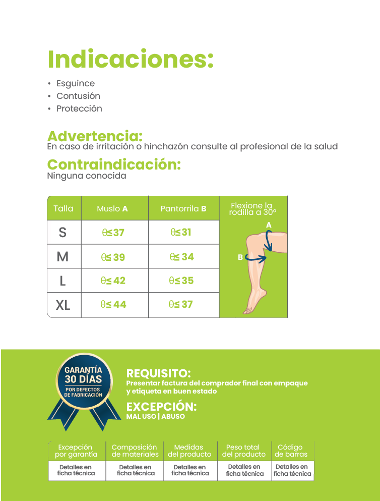 • Brinda soporte anatómico a los músculos débiles de la rodilla.