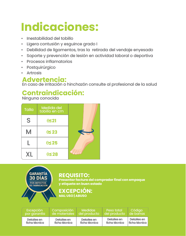 Si por causa al uso de este tipo de tobillera existiera un aumento en molestias o dolor, dejar de utilizarse y consulte al especialista pertinente.